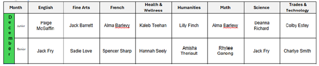 Jan 12 Posted on January 12, 2026 Good morning, Huskies! Today is Monday, January 12th and we are on a regular schedule today. Period 1 teachers are asked to check their email for a message sent last night about the study skills Kahoot we will be doing at the start of period one as part of our Zen Week to get ready for exams. If you have any questions about the Kahoot, please send a message to Mr. McCarthy. Also, if you are looking to borrow a laptop today please come to the office, not the Learning Commons. Nature NB will be at HHS on January 22nd at 6pm-8pm. Cultivating Connections: Stories of Farmers Protecting Nature – Join them for a film screening of “Homes on the Range” and “Guardians of the Grasslands” to celebrate the crucial role farmers play in protecting nature. Free snacks and entry. More information is available in the office, with a QR code to register. This is a reminder to all Fall Sport athletes that you must return your uniform to Mrs. Richard. You will not receive your report card if it is not returned. Today we’re celebrating the outstanding contributions of our students in the classroom by celebrating the Educational Achievement Awards for the month of DECEMBER. These learners may have shown dedication, creativity, and a positive attitude that uplifts those around them and enriches our learning community. Students may display curiosity and consistent effort that have made a meaningful impact. Others might be recognized for leadership, insight, and a commitment to academic excellence! We’re proud of all our students who bring energy, kindness, and a love of learning to school each day. Well done, everyone! If you hear your name, your certificate will be given to your homeroom teacher on Tuesday, so you do NOT need to come down to the office. The winners will be read by subject area, listing the Junior winner first and the Senior winner second. Sports: Congratulations to the Sr. boys basketball team on their successful home tournament. They finished 2nd after a overtime finish losing 83-80. Congratulations to the men’s hockey team who played a marathon of games over the weekend, winning three of their four games including winning the second annual dog bowl tournament hosted by the SJ Seadogs, come support your boys this Friday night where they host SJ High. JV Boys Basketball @ SSHS (5:30 PM) SR Boys Basketball @ SSHS (7:15 PM)